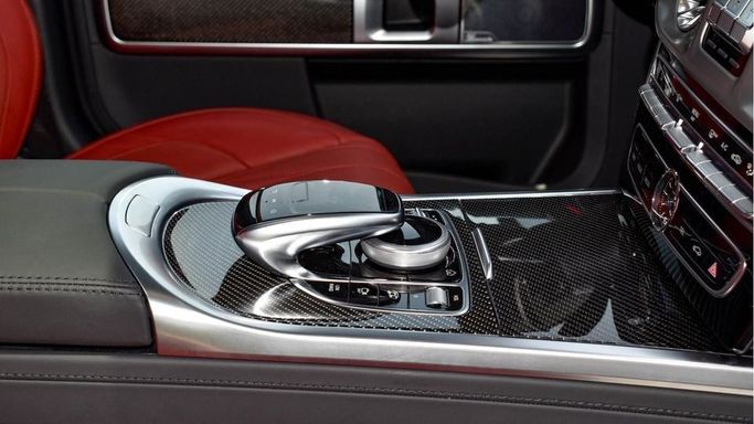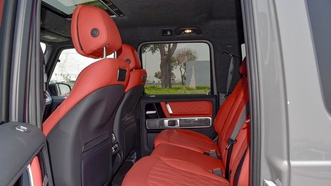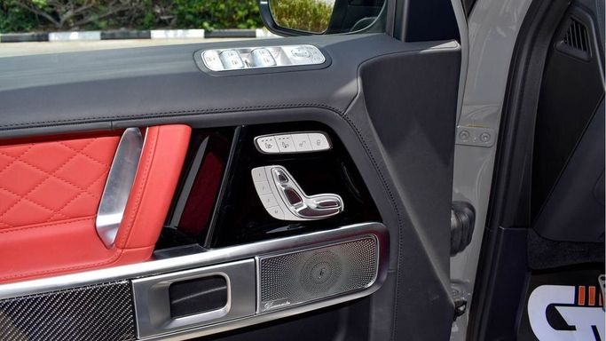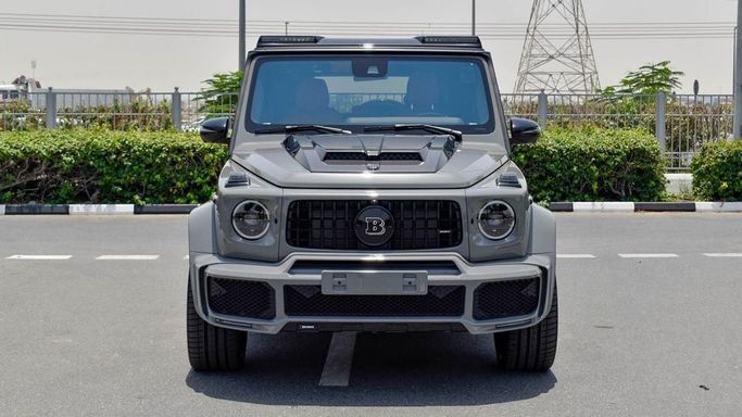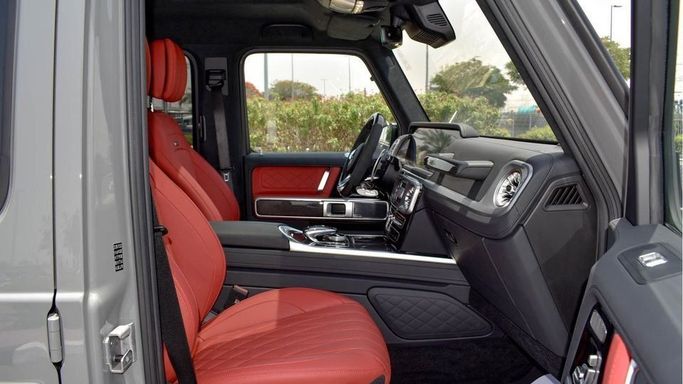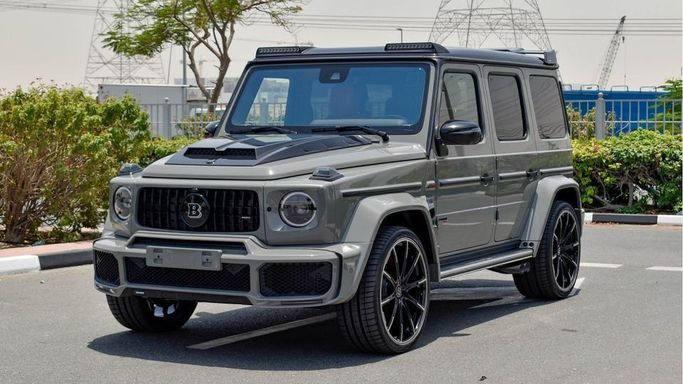 New Mercedes-Benz G 800 With BRABUS for sale from Najem Motors FZE in Dubai. Grey 2024 model. The car has automatic gearbox, 8 cylinder engine, 22″ wheels and red interior. European specs.