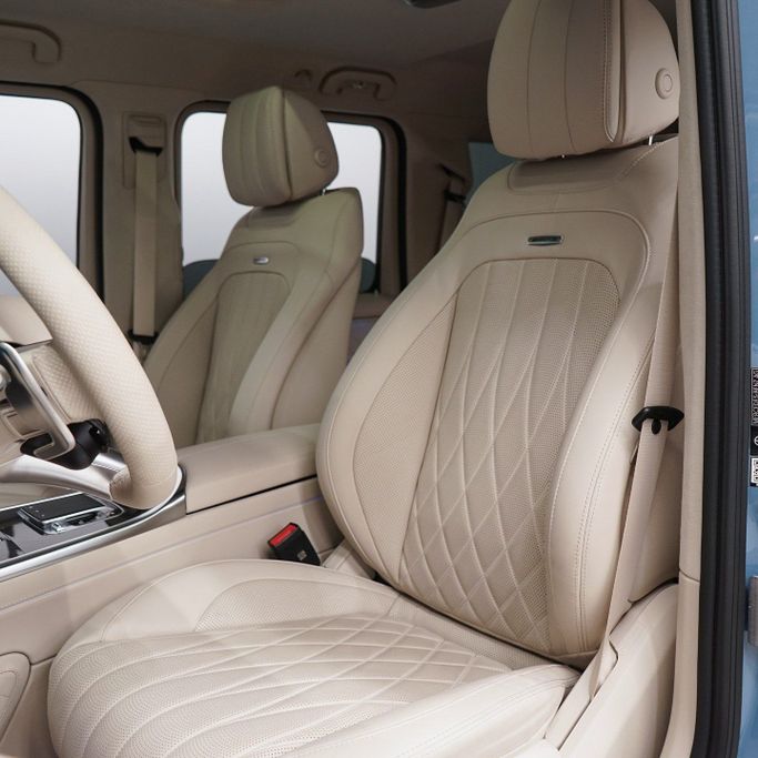 Model : MERCEDES BENZ AMG G63 Model Year : 2025 Engine : 8 Cylinder Color : China Blue / Beige Warranty : EUROPEAN / 2 Years Warranty Millage : NEW