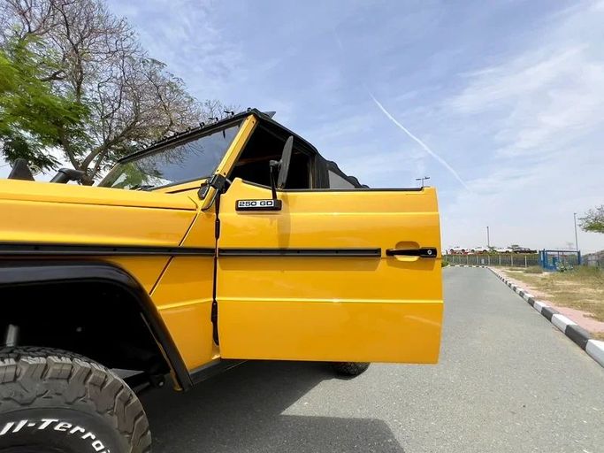 This 2016 Mercedes-Benz G-Class (W463, Facelift II) is a used Outdoor SUV finished in Yellow. It runs a 2.5-liter diesel engine delivering 204 hp, paired with a manual transmission and all-wheel drive for confident handling in a range of conditions. With one owner and a mileage reading of 50, this 250D-base model emphasizes robust torque and a straightforward, engaging driving experience that stays true to the G-Class ethos. The interior benefits from the facelift updates, offering refreshed materials and tech while preserving the iconic, upright cockpit and simple controls