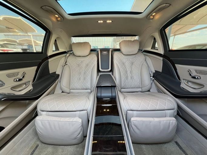 Maybach S560 Model : 2018 37,000km only Beige Interior Rear Entertainment TV Rear Vip Seat Fridge Table Heated and Cooling Cupholders Full Option Japan Import Clean Title Excellent Condition Location : Saeed Auto, Showroom # 76, Ras Al Khor, Ducamz.