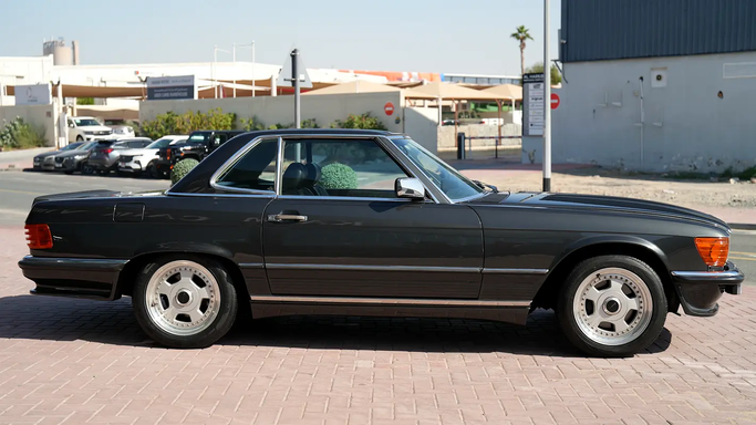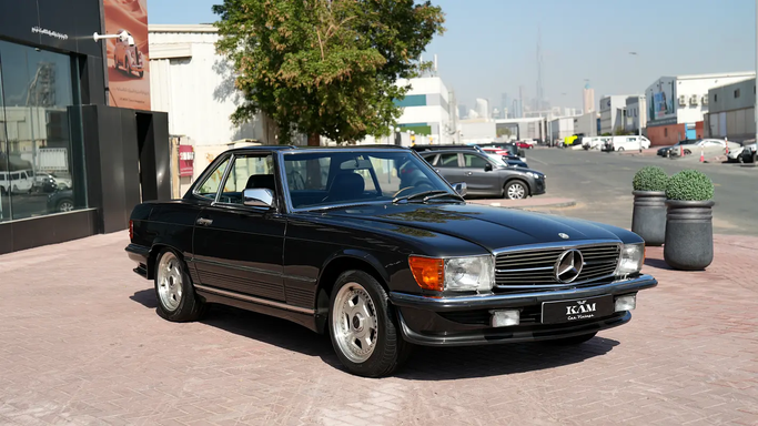 This 1987 Mercedes-Benz SL-Class R107 roadster presents with a timeless European specification and a striking black finish that exudes classic elegance. It sustains a muscular 5.0-liter V8 producing 223 horsepower, delivering steady, refined power through a smooth automatic transmission and rear-wheel drive that emphasize a confident, relaxed driving experience. With a single owner and a documented 150,000 kilometers, the car sits in a well-preserved condition for its age, offering a balanced blend of vintage Mercedes build quality and open-top driving pleasure. Inside, you