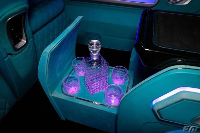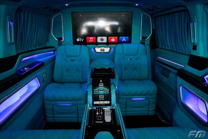 The 2023 VIP Business Van, based on the Mercedes-Benz V250, is a high-end luxury vehicle designed to provide a premium travel experience for business executives and high-profile clients. Its interior is meticulously crafted with premium leather upholstery, customizable seating configurations, and ample legroom for maximum comfort. The seats are often equipped with advanced features like reclining, heating, cooling, and massaging functions, along with swivel and sliding capabilities to create a business-class atmosphere. Privacy is a key consideration, with options for a par