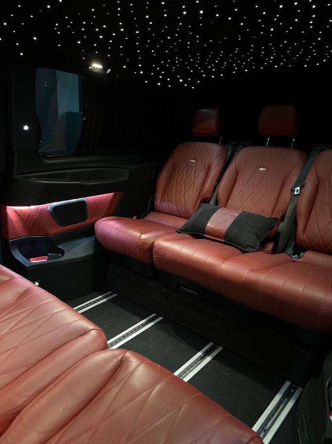 Mercedes-Benz V250. 88.000 KM. 2020 year. Petrol. 8 seats. GCC specs. Black exterior. Red interior. Well-maintained and clean car. All parts have original paint. Accident-free history. Regularly serviced, no mechanical or electrical issues. Comfortable family vehicle, drives perfectly. Well suited as a family car, business car, or for company transfers.