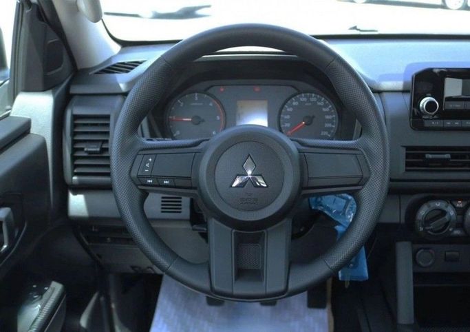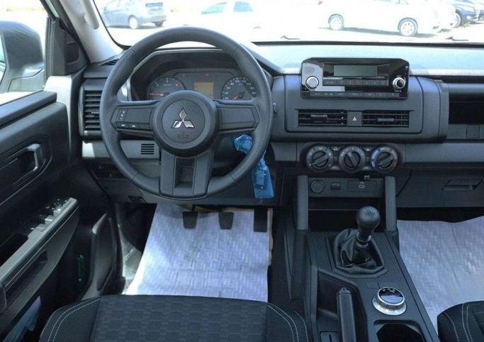New 2024 Mitsubishi L200 VI double cab pickup in white, built for GCC conditions with all-wheel drive and a 2.4-litre diesel engine delivering 150 hp. The manual transmission teams with a capable drivetrain to provide confident, controlled power on both paved roads and rough terrain, while the double cab offers a practical, comfortable cabin and a generous load area for daily use. Its clean, functional design emphasizes robustness and modern details, and the reliable Mitsubishi engineering behind the L200 supports durability in demanding environments. With the GCC-spec conf