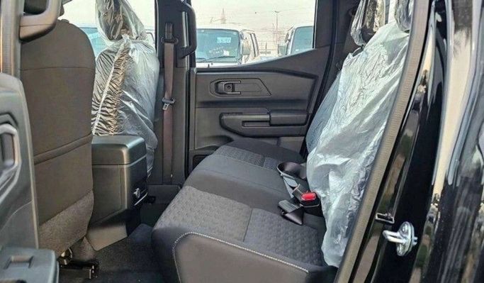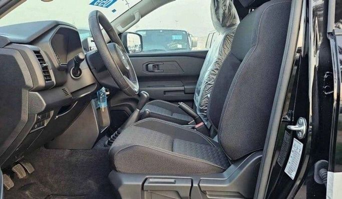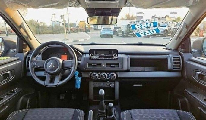 New 2025 Mitsubishi L200 VI double-cab pickup in black, built to handle everyday work with steadiness and a touch of style. It runs on a 2.4-liter petrol engine producing 128 horsepower and is paired with a manual transmission, with all-wheel drive to tackle varied surfaces. The VI generation emphasizes a practical, capable design: a roomy double cab, a durable bed, and controls laid out for straightforward use, all aligned with GCC specifications to suit regional requirements. This L200 blends comfort, robustness, and efficiency in a compact pickup package, making it a ver