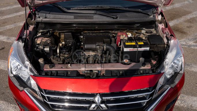 Introducing the 2024 Mitsubishi Mirage VI Facelift 2 sedan, a compact vehicle that expresses a harmonious blend of efficiency, practicality, and striking design. Dressed in a bold red finish, this stylish sedan stands out in any environment, turning heads and making a statement. With just one previous owner and a mere 100 kilometers on the odometer, this used vehicle is a fantastic opportunity for someone looking to elevate their driving experience. The heart of the Mirage is its efficient 1.2-liter gasoline engine paired with a seamlessly smooth Continuously Variable Tran