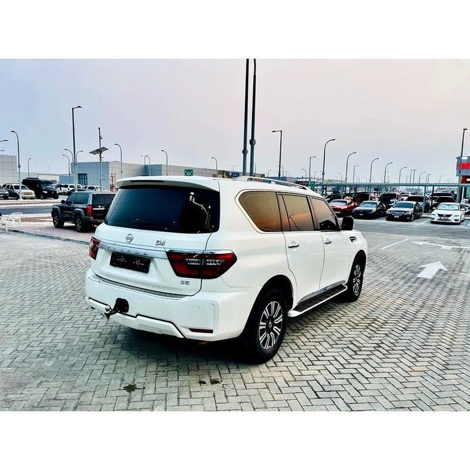 This 2020 Nissan Patrol SE PS2 is a white, full-size SUV built for both daily use and longer journeys. It comes in GCC specifications with an automatic transmission and all-wheel drive, powered by a 5.6-liter petrol V8 delivering 400 horsepower. The vehicle has had one owner and currently shows 166,000 kilometers on the odometer, reflecting steady, consistent use over the years. On the road, the Patrol offers strong, ready power from the V8 and smooth, easy gear changes through the automatic transmission. The all-wheel-drive setup adds confidence in varied conditions, whil