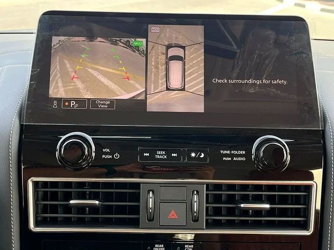 NISSAN PATROL 5.6L LE PLATINUM V8 PETROL A/T MY24 ENGINE & TRANSMISSION ENGINE: V8, 5.6L OUTOUT: HP 400 TORQUE: 560 NM EMISSION: EURO 4 STD TRANSMISSION: 7 Speeds automatic transmission with Manual shift mode BRAKES: Ventilated (Fr+ Rr) TYRE SIZE: 275/60 R20 All Season Hydraulic Body Motion Control V.V.E.L (Variable Valve Event & Lift) D.I.G(Direct Injection Gasoline) Variable 4WD system with Road management modes High Beam Assist Variable Intermittent+ Speed Sensitive+ Rain Sensitive Leather, Wood Grain Steering wheel Leather & Alcantara, Carbon Print Steering (Nismo)