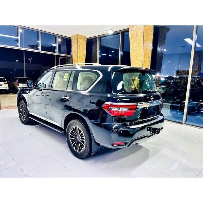 New 2024 Nissan Patrol SE Platinum in a deep black finish. This 5-door SUV pairs a 4.0-liter petrol engine with 275 horsepower to deliver confident on-road performance, while an automatic transmission works in harmony with all-wheel drive to provide steady grip across varied conditions. The GCC-spec version is tuned for regional use, balancing comfort with robust capability for daily drives and longer journeys alike. The facelift brings refreshed styling cues that give the Patrol a contemporary, commanding presence on the road, without losing the model’s familiar, durable