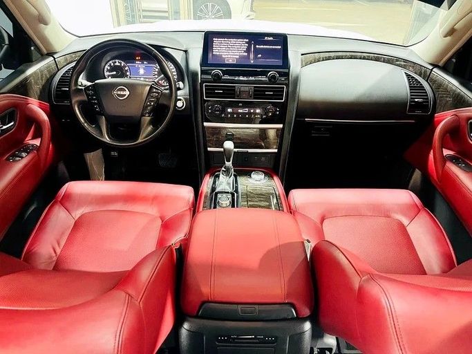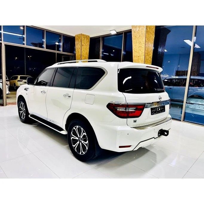 This 2024 Nissan Patrol LE Titanium is a well-preserved full-size SUV finished in white, built to cover a wide range of driving needs. It’s GCC-spec, powered by a 5.6-liter petrol V8 delivering 400 horsepower, with a smooth automatic transmission and all-wheel drive. With a single previous owner and roughly 42,000 kilometers on the odometer, it offers strong, confident performance paired with everyday practicality. The exterior and interior present a clean, purposeful look that suits both daily use and longer journeys. On the road, the Patrol balances strong acceleration w