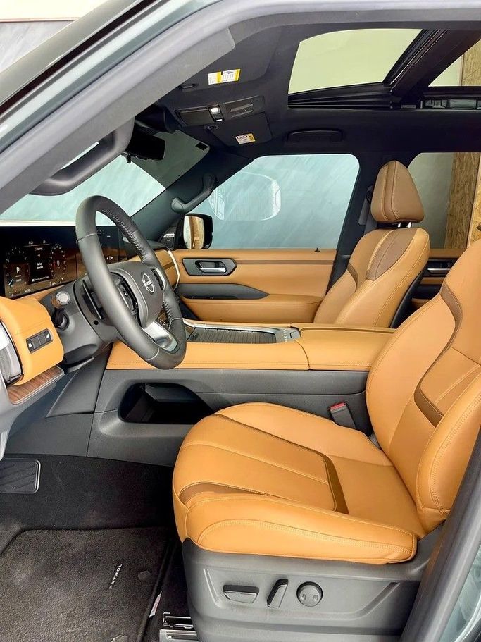 This used 2025 Nissan Patrol SE Titanium is a full-size SUV finished in a deep green, offering a commanding presence and practical capability. It carries GCC-spec equipment and comes from a single owner, with 34,000 km on the odometer. The powertrain features a 3.8-liter petrol engine delivering 316 horsepower, paired with an automatic transmission and all-wheel drive for confident performance in varying conditions. Inside, the Patrol prioritizes space and versatility, delivering a comfortable cabin that suits daily use and longer journeys alike. The combination of the smo