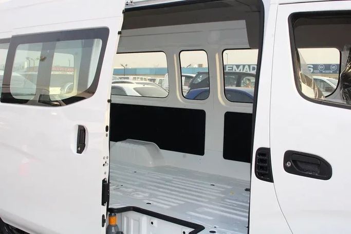 The new Nissan Urvan NV350 (E26) mini van, built in 2025, is white and features a 2.5-liter gasoline engine with 147 hp, a manual transmission, and rear-wheel drive. Due to its Japanese specifications, it combines reliability and practicality. The interior is spacious and flexibly configurable, offering comfortable seating and a well-thought-out storage system, making the vehicle convenient for both family trips and cargo transportation. The controls are simple and predictable, thanks to the manual transmission, while the rear-wheel drive ensures confident movement and stab