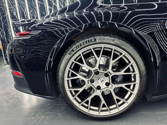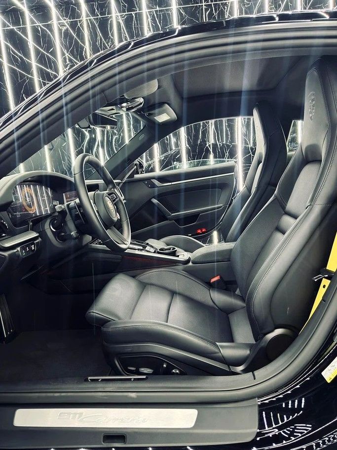 This 2025 Porsche 911 Carrera Coupe in black comes with a low 8,000 kilometers and a single-owner history. Power comes from a 3.0-liter petrol flat-six delivering 385 horsepower, driving the rear wheels through an automated manual transmission. The GCC-spec car stays true to the Carrera formula, offering a driver-focused balance of performance and daily usability in a timeless two-door package. With this trim, the 911’s classic rear-wheel-drive balance and precise steering translate into engaging handling. The 3.0-liter engine responds with steady mid-range punch, while th