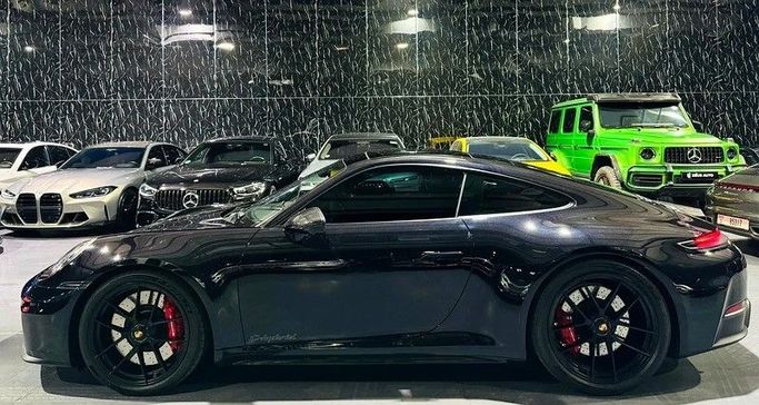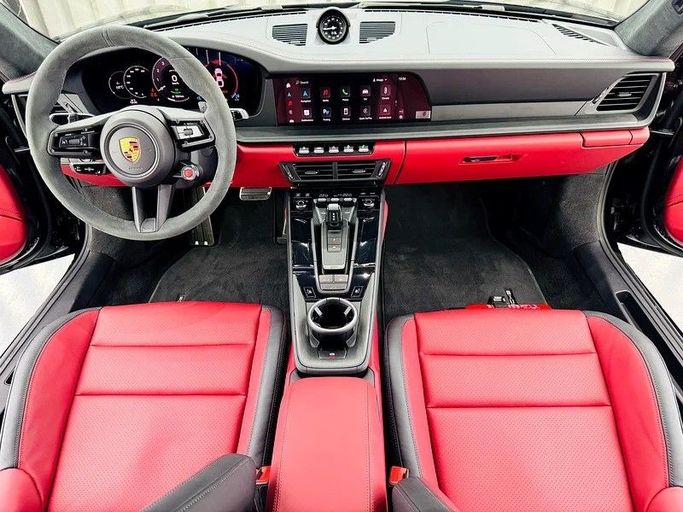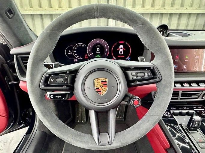 This 2025 Porsche 911 Carrera GTS (992 generation) is a striking black two-door coupe with a refined, understated look. It has had a single owner and sits with exceptionally low mileage—about 300 km—making it feel essentially as new. The car carries GCC specifications to suit regional requirements and remains covered by a factory warranty through May 1, 2027, offering reassurance on the road ahead. Power comes from a 3.0-liter turbocharged flat-six delivering 480 horsepower, paired with a rear-wheel-drive layout and an automated manual transmission. The Carrera GTS sits be