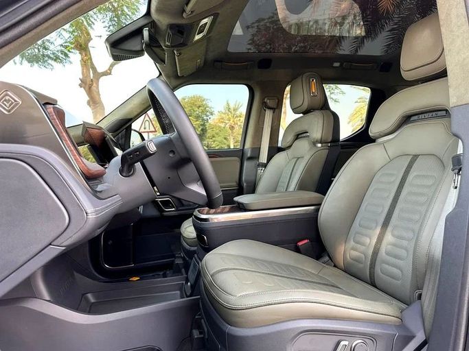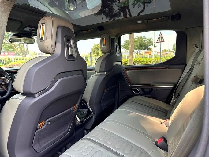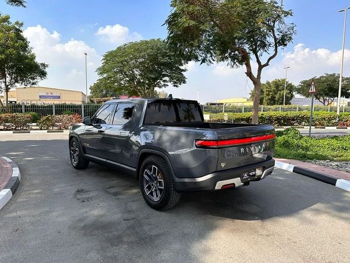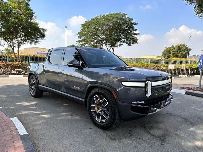 This 2023 Rivian R1T is a used double-cab pickup finished in grey, with a single previous owner and about 14,000 miles on the odometer. It runs an electric drivetrain modified to 496 kW (AT), delivering around 665 horsepower, with all-wheel drive and an automatic transmission that provide strong, steady performance in a variety of conditions. Built to American specifications, it combines practical, modern design with a tech-forward interior that emphasizes comfort and versatility, including a roomy cabin and the gear tunnel for additional storage. The exterior presents clea