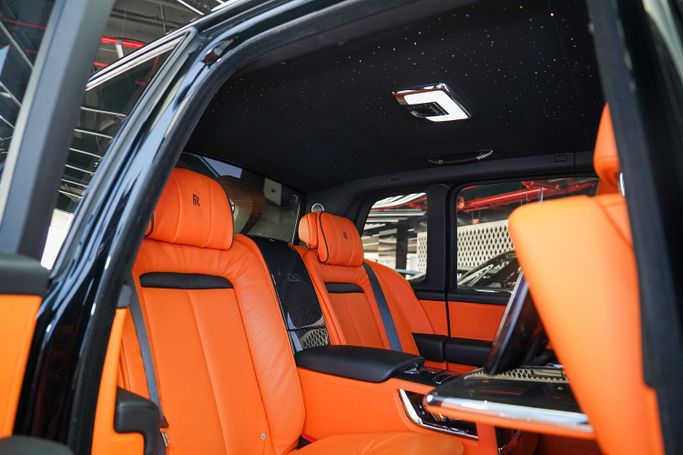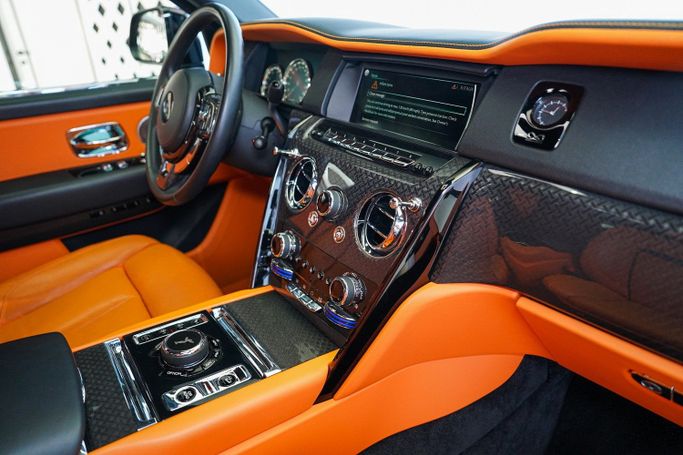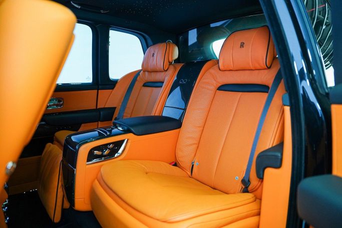 2022 Rolls Royce Cullinan Black Badge, The Ultimate Driving Machine Unrivaled Luxury and Performance Welcome to Exotic Cars Dubai, your top spot for the world’s most exclusive supercars and luxury vehicles. We are excited to introduce this remarkable 2022 Rolls Royce Cullinan Black Badge, the boldest version of the world’s most luxurious SUV. This pre-owned beauty features a sleek black exterior with a striking orange interior. Black Badge-exclusive carbon fiber details and custom enhancements highlight its design. Incredible Power and Speed The Cullinan Black Badge