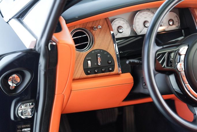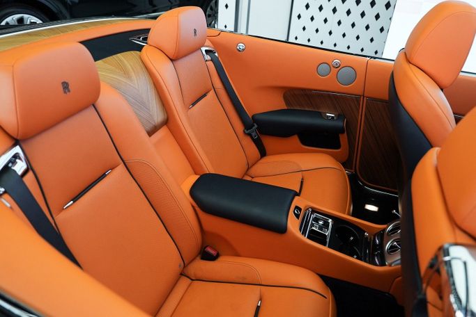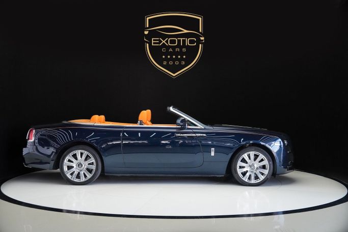 The 2016 Rolls-Royce Dawn reimagines luxury motoring with the serenity of top-down travel and the unmistakable presence of handcrafted British excellence. Designed to capture the spirit of spontaneous sophistication, this Dawn is finished in a rich Blue exterior with a Blue soft convertible roof, and a striking Orange leather interior — a configuration for those who embrace individuality and refinement in perfect harmony. Now available at Exotic Cars Dubai, this Dawn delivers pure Rolls-Royce grandeur, underlined by a bold bespoke character.
