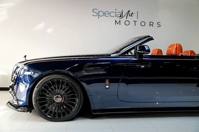 ROLLS ROYCE DAWN / BLACK BADGE MANSORY / 2017 / 9,279KM / EUROPEAN SPECS • Black Badge • Original Mansory Interior and Exterior • European Specs • Soft Top Convertible • Head's Up Display • 2 Individual Seats • Carbon Fiber Steering Wheel • Carbon Fiber Front Middle Console • Carbon Fiber Rear Middle Console • Carbon Fiber Front Bonnet • Carbon Fiber Front Bumper • Carbon Fiber Rear Bumper • Suspension Lifter • Night Vision • 360 Degree Cameras • Lane Assist • Black Wheels • Orange Brake Calipers • 22 Inch Wheels