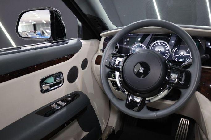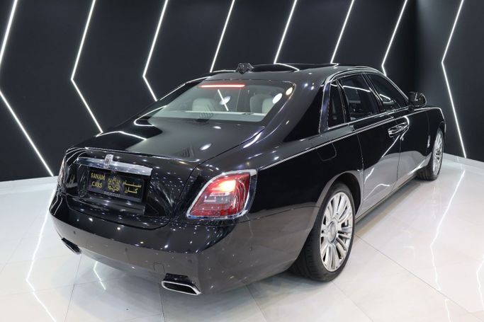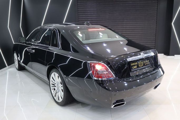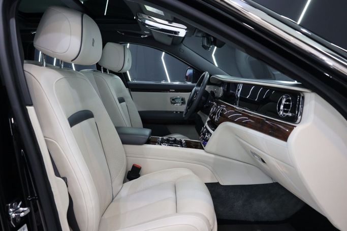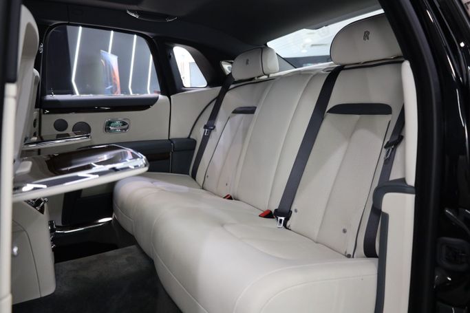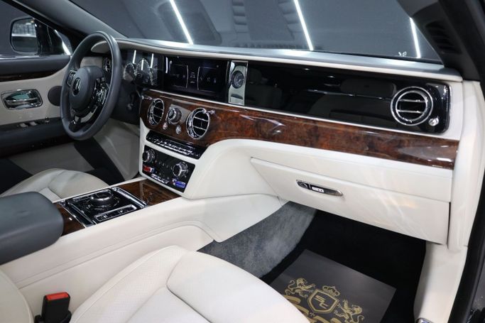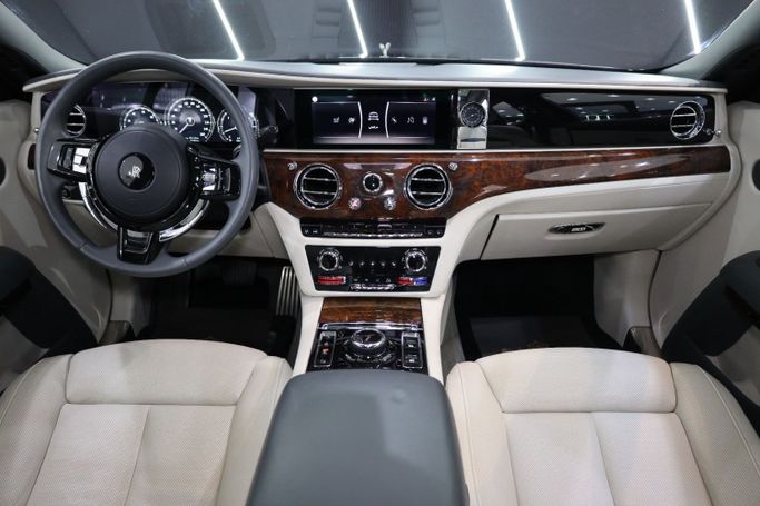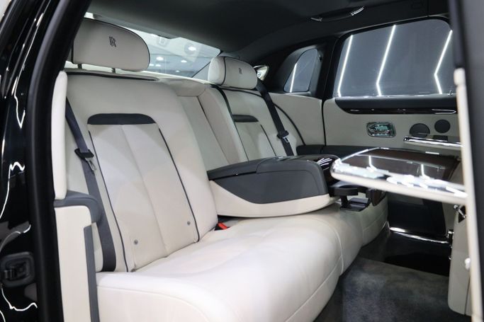 Rolls Royce Ghost GCC Specifications Full Body Paint Protection Film Panoramic Roof Wood Interior Ventilated Seats Rear-Seat Picnic Tables Heated Steering Wheel Apple CarPlay Head-Up Display Blind Spot Assist White Double Coachline 360° Camera 21-Inch Wheels