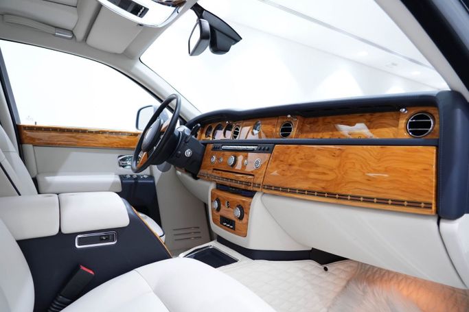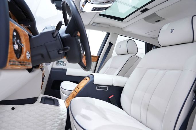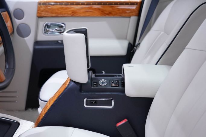ROLLS ROYCE PHANTOM MODEL 2014 61,308 KM 6.7L / V12 Cylinder 8 Speed Automatic Transmission 720 N.M of torque 453 Horsepower Rear Wheel Drive 0 to 100 KM/h in 6.1s GCC Specs ——– Additional Features ———- – Category Luxury sedan assembly Goodwood – Bluetooth Systems – Climate control – Cruise control – Leather seats – Sunroof – Parking sensor rear – Navigation systems – Rear camera – Power seats – USB – Tuner/radio – Parking sensor front – Self-steering wheel – Analog clock – AUX audio in – Rear tv screens – Air conditioning – Alarm – Power locks – Power seats with memory – P