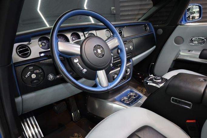 Rolls-Royce Phantom Drophead Waterspeed Collection - 1 of 35 Limited Edition The Rolls-Royce bespoke team created the Phantom Waterspeed Collection, a Limited Edition of 1 of 35, to celebrate an act of British heroism. The extraordinary depth of color on the body comes from nine individual layers of the same Maggiore Blue, commemorating the 1937 Water Speed Record of 129.5 mph set by Sir Malcolm Campbell on Lake Maggiore on the Swiss-Italian border. Incorporating elements from Campbell’s Bluebird, the door cap end features a hand-painted coachline as the final touch. A u