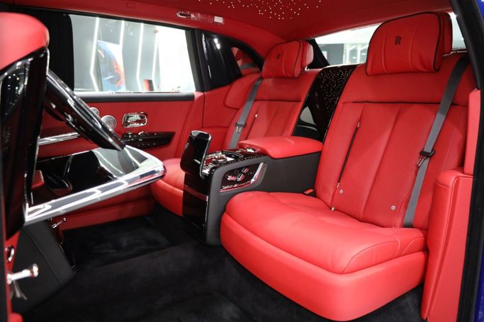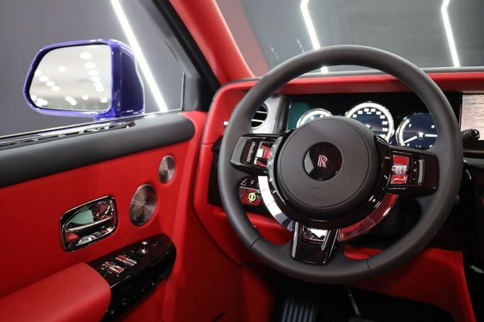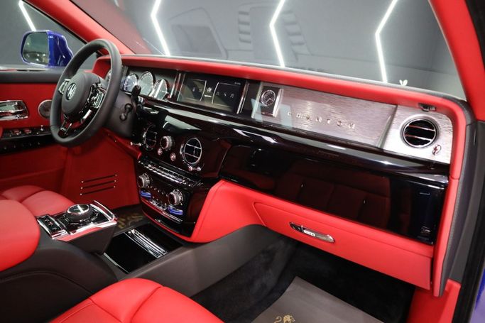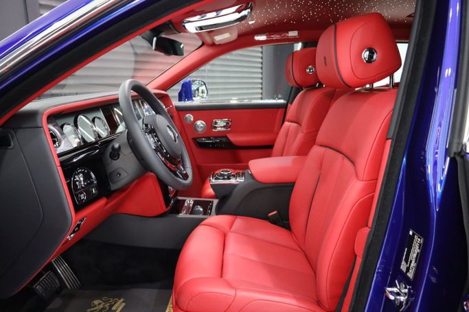 Rolls Royce Phantom EWB GCC Specifications Dealer Warranty and Service Until 11/2027 Illuminated Grille Headlights with Intricate Laser-Cut Bezel Starlights Starlight Headliner The Gallery Fascia Bespoke Audio Immersive Seating with Center Console Rear-Seat Entertainment Rear-Seat Picnic Tables Ventilated and Massage Seats Rear Refrigerator Rear Electric Curtains Rear-Seat Headrest Cushions RR Monogram on All Headrests Apple CarPlay and Android Auto Wireless Charging Tray Head-Up Display Blind Spot Assist Red Single Coachline 360° Camera 22-Inch Wheels