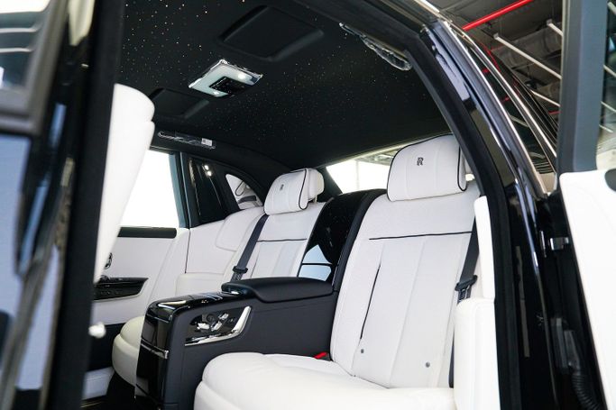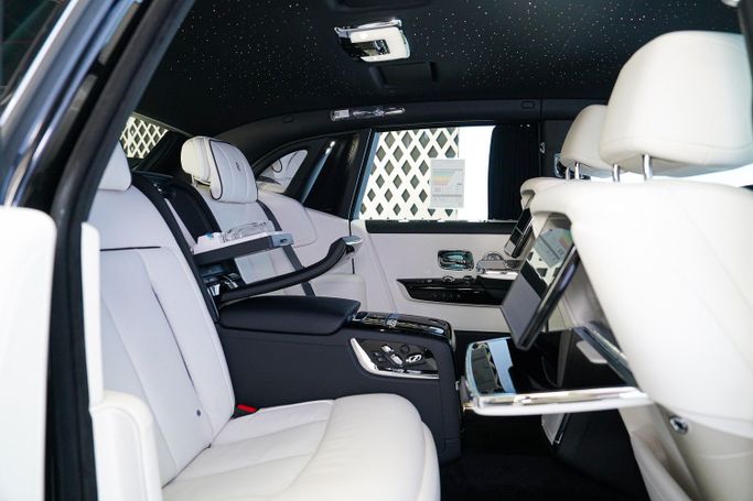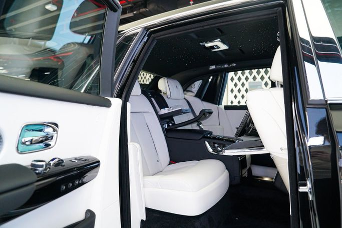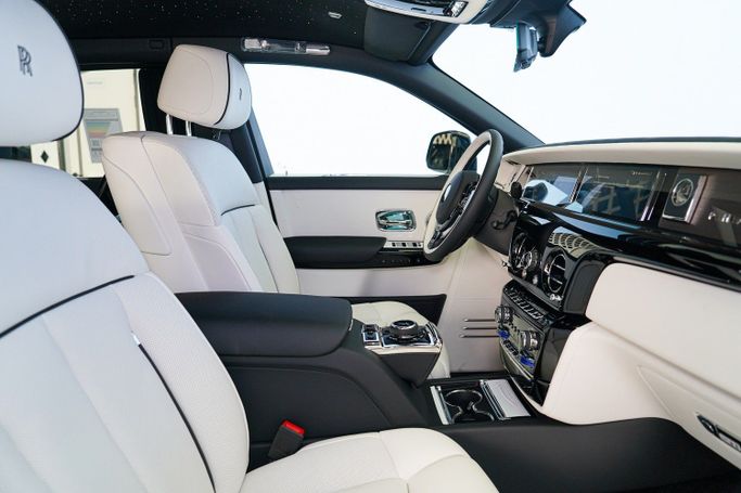 The 2025 Rolls-Royce Phantom VIII arrives in a deep black that emphasizes its stately silhouette and refined presence. This new sedan is powered by a 6.7-liter petrol V12 delivering 571 horsepower, mated to a smooth automatic transmission and rear-wheel drive. With only about 100 kilometers on the clock, it offers pristine condition and the quiet, confident character that defines Phantom ownership in GCC markets. On the road, the combination of power and chassis engineering delivers effortless acceleration and serene refinement. The V12 settles into a refined hum, while th