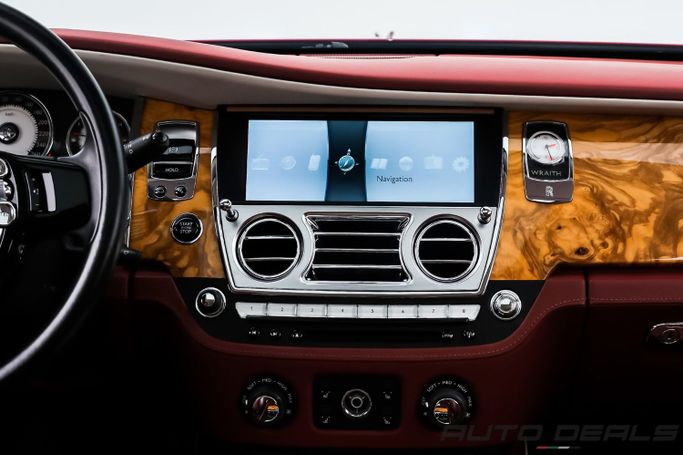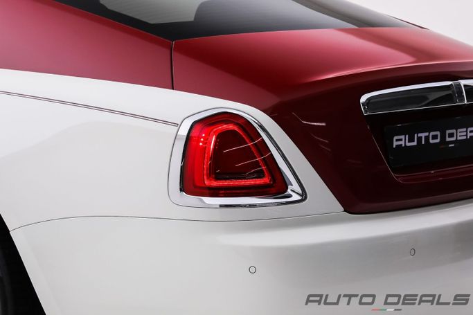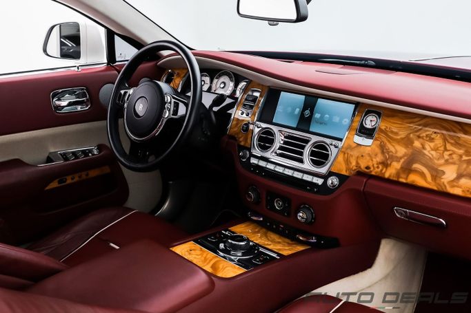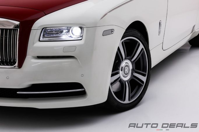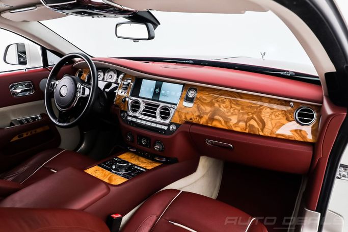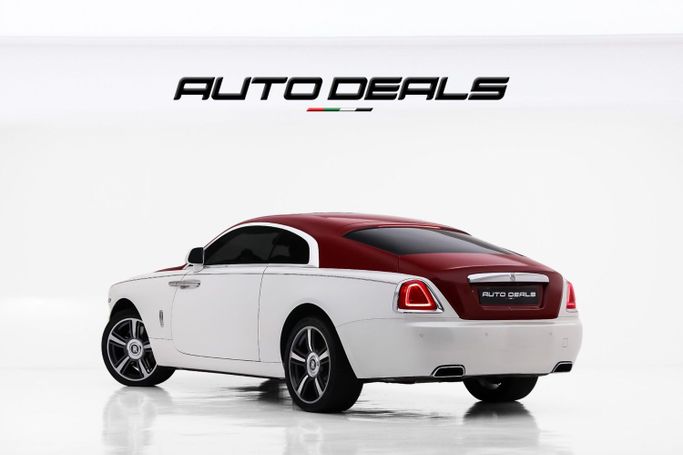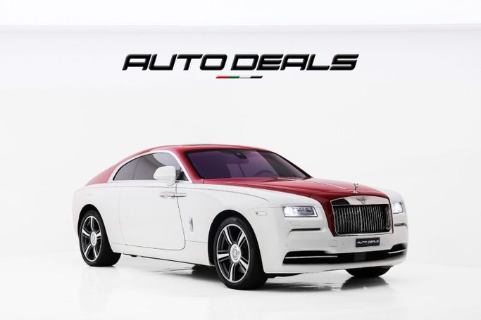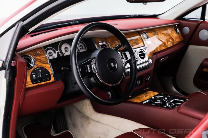2014 Rolls-Royce Wraith, a two-door coupe finished in white, blends serene luxury with a strong road presence. This single-owner GCC-spec model has 104,068 km on the clock and is powered by a 6.6-liter twin-turbo V12 producing about 632 horsepower, paired with an automatic transmission to rear-wheel drive. The ride emphasizes refinement and comfort, with quiet cabin acoustics and meticulously crafted materials that highlight Rolls-Royce's attention to detail. Its clean silhouette, poised stance, and understated elegance define a modern grand-tourer that suits long-distance