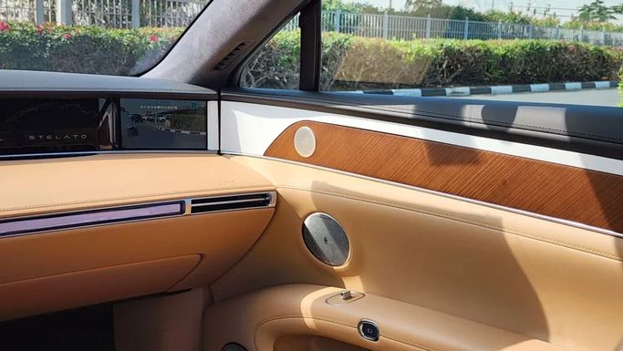 We present to your attention the new 2024 Stelato S9 sedan, which combines advanced technology and elegant design. This car, made in a luxurious golden color, will perfectly emphasize your status and style. With 390 kW of power powered by an electric motor, the S9 offers unparalleled dynamics and smooth running, making every ride comfortable and enjoyable. The all-wheel drive system guarantees safe movement on all types of roads, and the automatic transmission ensures maximum ease of operation. It doesn't matter if you are going on a long trip or solving everyday tasks, th