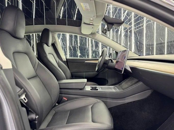 This used 2024 Tesla Model Y Performance in grey is a GCC-spec five-door SUV, powered by an electric all-wheel drive system. It has a single prior owner and 22,554 km on the clock. The Performance-grade setup delivers 357 kW (486 hp) and uses a single-speed automatic transmission, giving brisk acceleration and confident highway pace while maintaining the efficiency typical of a Tesla. The combination of sport-oriented performance and practical SUV packaging makes it well-suited to everyday use and longer trips alike. Inside, the Model Y offers a quiet, refined ride with in