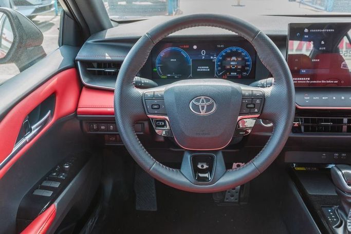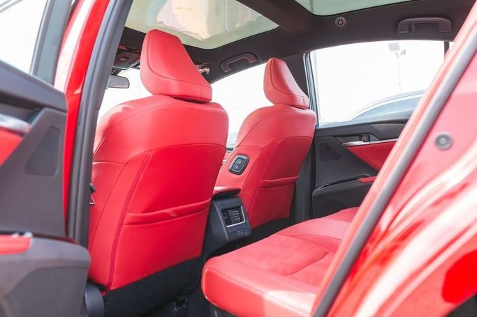 Toyota Camery Sport Plus Red Model: 2024 Manufacturing: For the Chinese market Classification: Hybrid Sports Sedan Number of Doors: 4 Number of Seats: 5 Drivetrain: Front-wheel drive (FWD) Engine and Performance: Engine Type: Hybrid Displacement: 2.0-liter (2000cc) Number of Cylinders: 4-cylinder Horsepower: Approximately 197 hp Torque: Approximately 221 Nm Transmission: Automatic CVT Exterior Design: Front Grille: Sporty and Luxurious Headlights: Full LED with DRL Rearlights: Connected LED Strip Rims: 19 inches Sporty Air Vents Electrically Adjustable Side Mirrors Folding