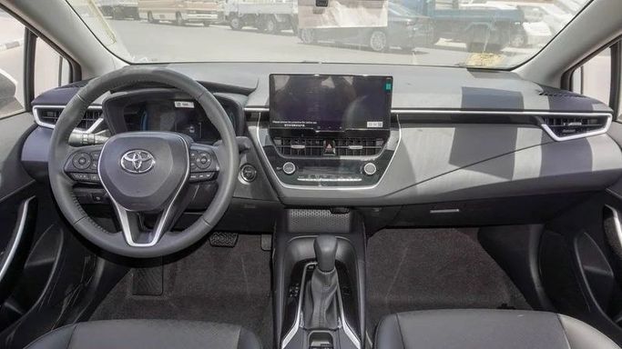 The new Toyota Corolla XII (E210) Facelift is a sedan in white color produced in 2025. It harmoniously combines economical hybrid technology and modern style. Under the hood, a hybrid power plant with a 1.8-liter engine develops approximately 140 horsepower, working through a continuously variable CVT transmission that delivers smooth acceleration and fuel-efficient performance in city driving conditions. The base Sporty version adds a more dynamic character while maintaining comfort for daily use. Front-wheel drive and precise suspension tuning provide confident road beh