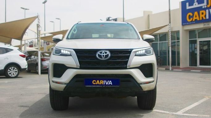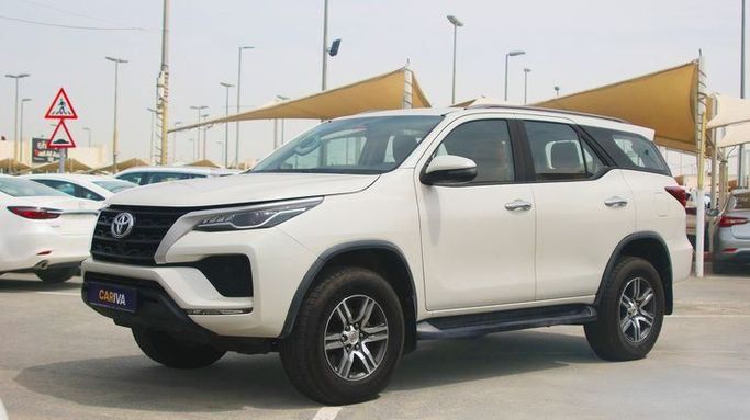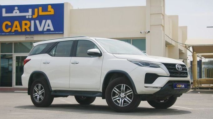 This 2021 Toyota Fortuner II Facelift is a used white 5-door SUV equipped with a 2.7-liter petrol engine delivering 166 hp, paired with an automatic transmission and all-wheel drive. It carries GCC specifications, has had a single prior owner, and has logged about 110,750 kilometers, suggesting a balanced pattern of daily use and longer trips. The clean white finish and SUV silhouette give it a practical, versatile look suitable for a range of settings. Inside, the Fortuner offers generous interior space with a flexible seating arrangement that supports family life and wee