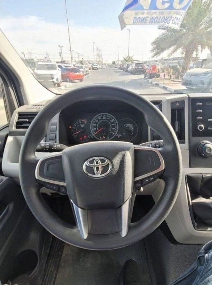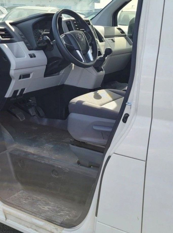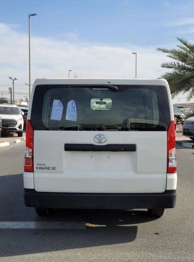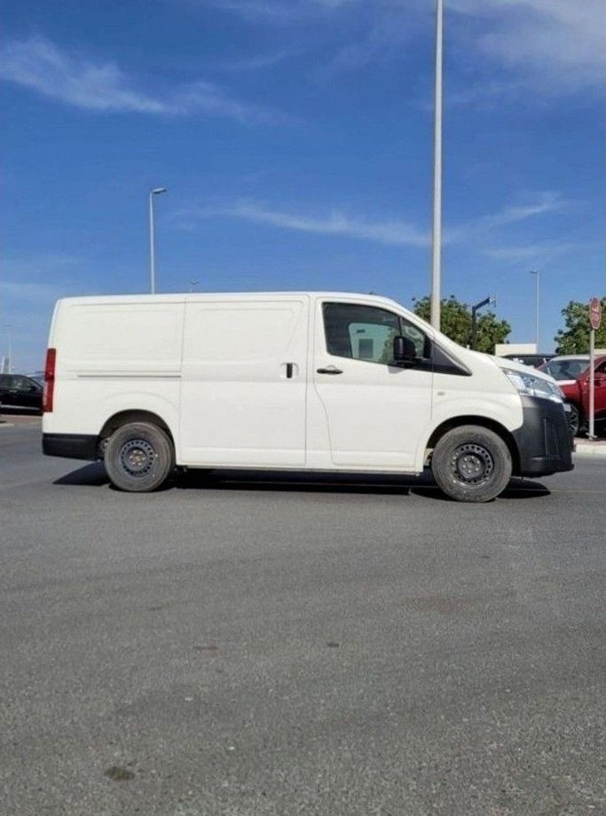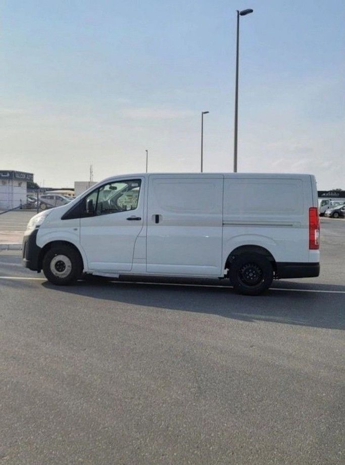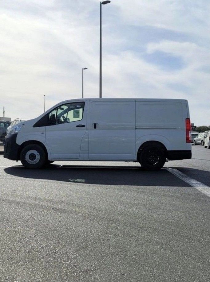 New 2025 Toyota HiAce H300 van in white blends reliability with practical versatility. It is powered by a 3.5-liter petrol engine delivering 281 horsepower, paired with a manual transmission and rear-wheel drive for predictable performance under load. The GCC-spec variant ensures compatibility with local roads and climate, while the cabin emphasizes a straightforward, durable layout and ample cargo space that suits daily work use or family transport. Clean lines and a functional design reflect a focus on efficiency and long-term usability, making this HiAce a solid choice f