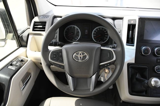 2025 Toyota Hiace 3.5L V6 Petrol Manual full option Comes with 3 point seat belt, Leather Seats, Rear Heater and Cooler, Music System etc. Zero kilometers driven car is available for sale in Al Madina Cars. Contact us for further details: for ( English, Urdu, Hindi ) for (Arabic, English, Farsi, Urdu)