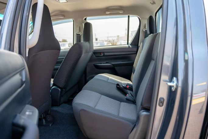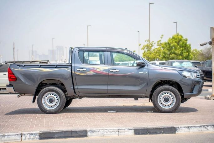 The 2025 Toyota Hilux Double Cab in a contemporary grey finish brings robust capability and trusted reliability to everyday use and weekend adventures. Under the hood sits a 2.4-liter diesel engine delivering 150 horsepower, paired with a manual transmission and all-wheel drive, offering steady performance and confident handling across varied terrains. Built to GCC specifications, this new Hilux blends practical size with resilient construction, making it a strong choice for work duties and family trips alike. Inside, the cabin prioritizes practicality and comfort, with str