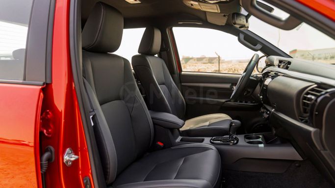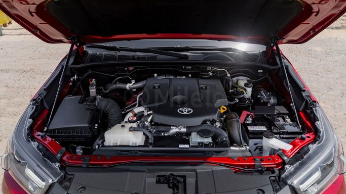 Experience the robust allure of the 2024 Toyota Hilux, a pickup that stands as a testament to Toyota's enduring legacy in reliability and performance. This eighth-generation facelift model is designed to tackle any terrain, whether you're navigating city streets or off-road adventures, thanks to its advanced all-wheel drive system. With a powerful 204 hp 2.8-liter diesel engine paired with a smooth automatic transmission, the Hilux offers a perfect blend of power and efficiency, ensuring you have the capability to handle any task with ease. This new double cab configuratio