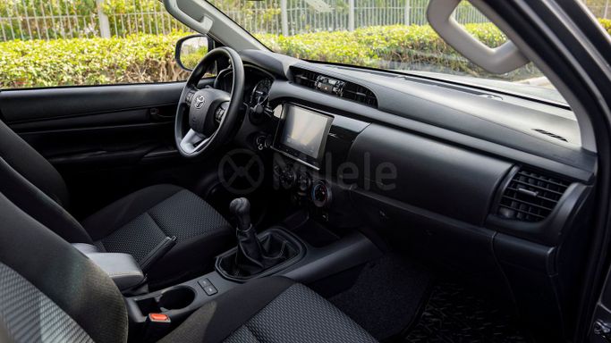 Introducing the all-new 2024 Toyota Hilux, a vehicle that epitomizes strength, durability, and refined style. As part of the distinguished eighth generation, this facelifted edition elevates the renowned Hilux to new heights while retaining the rugged charm that has made it an exemplary choice for both work and leisure. Finished in a sleek grey, this double cab pickup is designed to command attention while offering unparalleled functionality. Under the hood lies a robust 2.8-liter diesel engine that delivers an impressive 204 horsepower. This power is coupled with an all-w