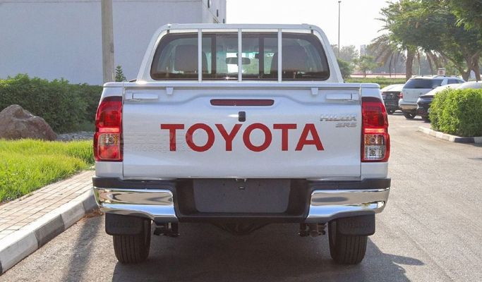 2025 Model Toyota Hilux DC, 2.7L Petrol, 2WD 6A/T (SHP2A25) Export outside GCC countries only. ---------------------------------------------------------------------- DESCRIPTION - 16" Alloy Wheels - 6 Speakers - 8" Display Audio with Bluetooth and USB - Dual Auto Air Conditioner - Drive Mode with ECO and PWR Switch - Instrument Panel Center Cluster - Vehicle Stability Control with Hill Assist Control and Traction Control - Cool Box - Rear Camera - Power Windows - Leather Seats - Fog Lamps - Seat Reclining (Driver and Passenger) - Smart Door