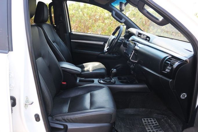 TOYOTA HILUX ADVENTURE DIESEL 2023 DOUBLE CABIN FULL OPTIONS LEATHER SEAT , AUTOMATIC SEAT , CRUSE CONTROL , RADAR This 2023 Toyota Hilux VIII Facelift in white comes with a single owner and European specifications. It is a double cab pickup powered by a 2.8-liter diesel that delivers 200 hp, paired with an automatic transmission and all-wheel drive for confident traction in a range of conditions. At 155,000 km, it sits within a practical mileage for its age, while offering a spacious cabin with durable materials, comfortable seating for four, and a practical cargo area. T