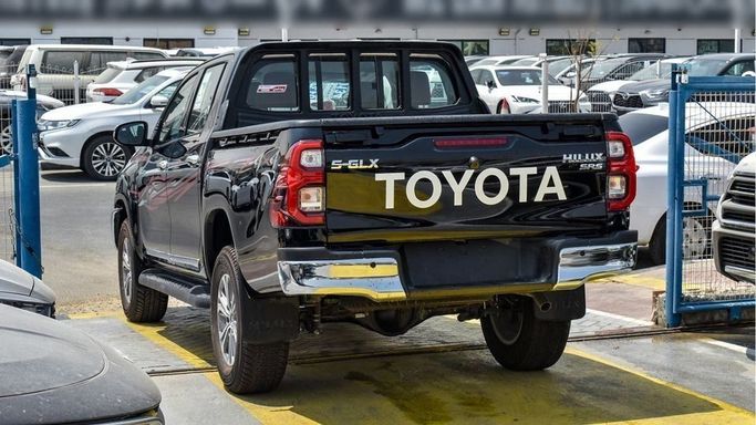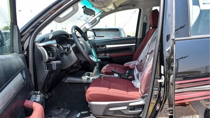 Brand new Toyota Hilux S-GLX SR5 2.7L M/T for sale in Dubai. Black 2024 model, available at Najem Motors FZE. This car has manual transmission, 4 cylinder engine, 17″ wheels and red interior. GCC specs.