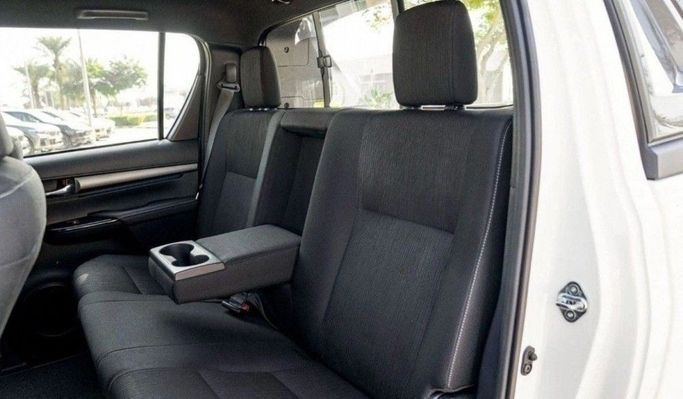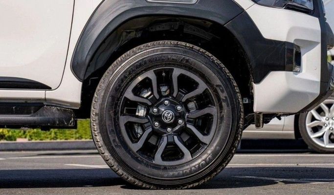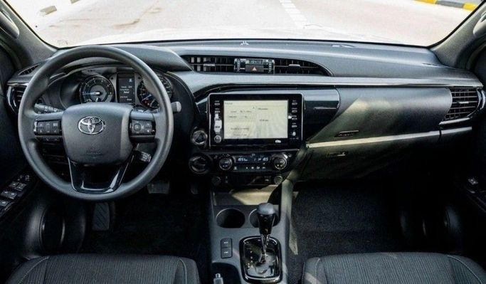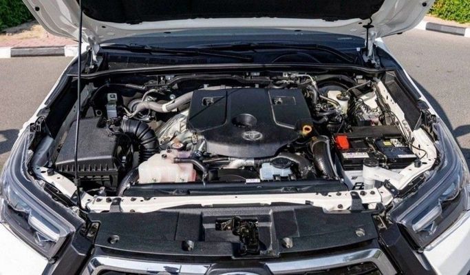 The 2024 Toyota Hilux VIII Facelift in white blends rugged capability with everyday practicality in a double-cab pickup. Under the hood sits a 2.8-liter diesel generating 204 horsepower, paired with an automatic transmission and all-wheel drive for steady performance in a range of conditions. The update brings a clean, modern exterior and a durable yet comfortable interior, where ergonomic controls, durable materials, and intuitive technology support daily use and longer trips alike. Cargo versatility remains a core strength, with a sizable bed, clever storage, and flexible