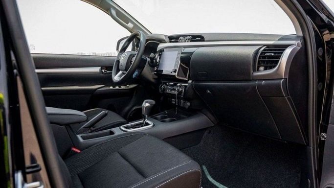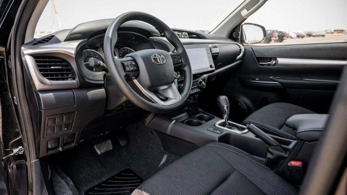The 2024 Toyota Hilux VIII Facelift arrives in a sleek black finish as a new double-cab pickup that blends rugged practicality with a refined everyday feel. Under the hood sits a 2.4-liter diesel delivering 150 horsepower, paired with an automatic transmission and standard all-wheel drive to provide steady torque and confident grip on varying surfaces. This GCC-spec variant brings region-appropriate equipment, while the facelift updates bring sharper styling cues and a more comfortable cabin experience, combining durable materials with improved noise isolation for a calmer