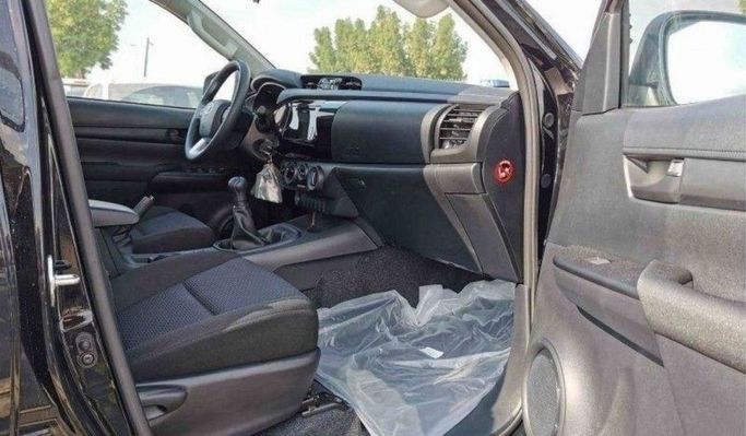 This new 2024 Toyota Hilux VIII Facelift is a double cab pickup built for work and everyday use. It pairs a 2.4-liter diesel engine with 150 hp to a manual transmission, delivering solid thrust and precise control. All-wheel drive enhances traction across surfaces, while the exterior black finish gives a bold, no-nonsense look. Inside, the crew cab layout prioritizes practicality with durable materials and a straightforward control setup designed for long days on the road or at the job site. The facelift updates bring refreshed styling and modern cues to both the exterior a