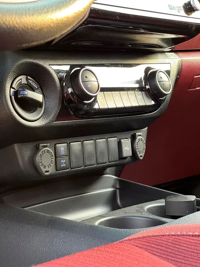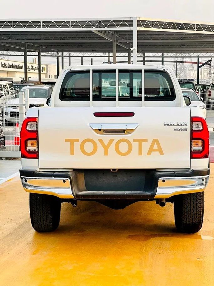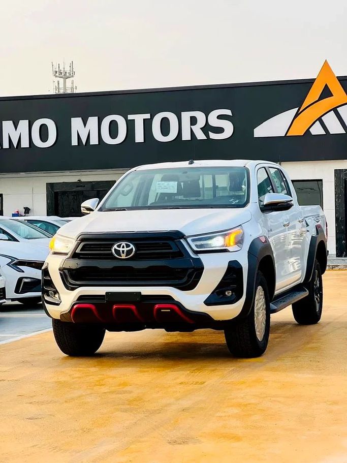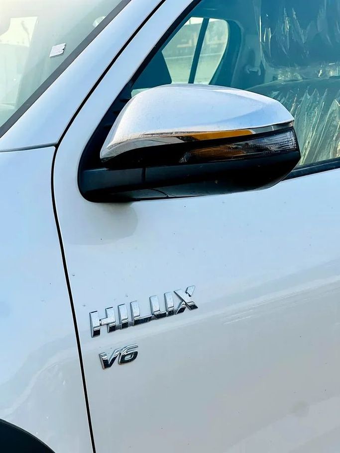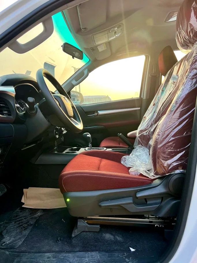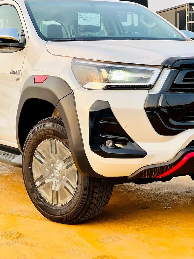 TOYOTA HILUX SR5 FULL OPTION 4.0 PETROL 2025 A / T Toyota Hilux SR5 2025 (4.0L Petrol) الفئة والموديل • تويوتا هايلوكس SR5 • موديل: 2025 • محرك: 4.0 لتر V6 (بنزين) • ناقل حركة: أوتوماتيك مع نظام تيبترونيك • نظام الدفع: دفع رباعي (4WD) ⸻ الشكل الخارجي • اللون الخارجي: أبيض مع تطعيمات سوداء ولمسات باللون الأحمر في أسفل الصدام الأمامي (أسلوب رياضي/أوف رود) • الشبك الأمامي أسود مطفأ بتصميم رياضي هجومي • أنوار أمامية LED بالكامل • كشافات ضباب (Fog Lights) • رفارف عريضة (Overfenders) • جنوط رياضية (Premium Rims) • إطارات مخصصة للأوف رود (Off-Road Tyres) • صدام أ