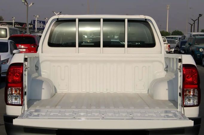 The new 2025 Toyota Hilux VIII Facelift is a dual-cab pickup truck with all-wheel drive and automatic transmission, equipped with a 2.7-liter gasoline engine delivering 166 hp. The vehicle is white, with a design that emphasizes practicality and modernity. The interior is thoughtfully designed for the comfort of both the driver and passengers, featuring comfortable ergonomics and ample space. All-wheel drive provides confidence on all roads and in off-road conditions, while the automatic transmission ensures a smooth and predictable driving experience. The warranty is valid