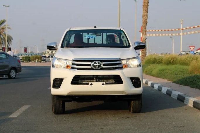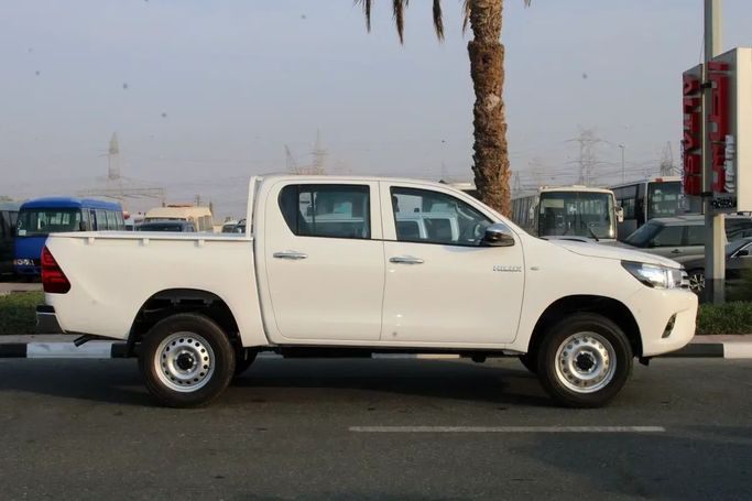 The new 2025 Toyota Hilux VIII Facelift in white features a 2.4-liter diesel engine that delivers 150 hp, an AWD all-wheel drive system, and a manual transmission. The double cabin, designed according to GCC specifications, focuses on regional conditions and combines practicality with reliability for daily operations and work tasks. The updated design and thoughtful ergonomics of the cabin ensure comfort during travel and confident handling on various roads. The warranty is valid until January 1, 2027, providing assurance for long-term operation. This Hilux represents a sen