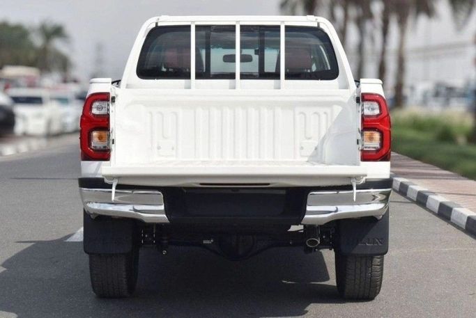 New 2025 Toyota Hilux VIII Facelift in white, a double-cab pickup that blends daily practicality with rugged capability. It is powered by a 2.7-liter petrol engine delivering 166 hp, paired with an automatic transmission and all-wheel drive for steady performance on highways and varied terrain. The facelift brings updated exterior cues and a refreshed interior feel, while GCC-spec configuration ensures compliance with regional requirements. Inside, the cabin emphasizes comfort and versatility, with a straightforward layout and space for passengers and gear alike. This Hilux