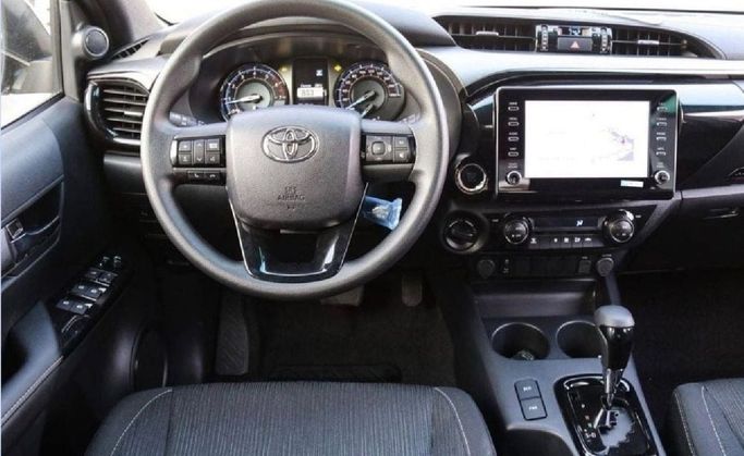 New 2025 Toyota Hilux VIII Facelift in black offers practical versatility with modern capability. Built to meet GCC specifications, it features a 4.0-liter petrol engine delivering 238 horsepower, paired with an automatic transmission and all-wheel drive for confident performance in varied conditions. The bold, clean exterior lines are complemented by a practical cargo bed and a roomy cabin, making daily use comfortable and ready for both work needs and personal use. Inside, you’ll find a straightforward, well-organized cockpit with supportive seating and intuitive controls