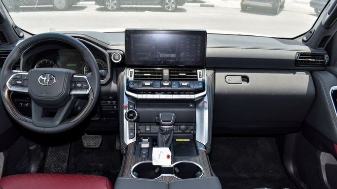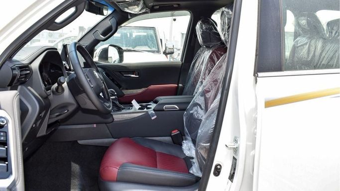 New Toyota Land Cruiser VX.R for sale from Najem Motors FZE in Dubai. White 2024 model. The car has automatic gearbox, 6 cylinder engine, 20″ wheels and burgundy interior. GCC specs.